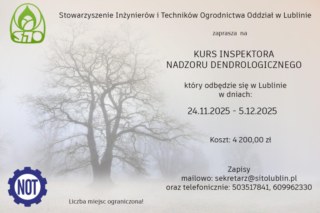 Stowarzyszenie Inżynierów i Techników Ogrodnictwa Oddział w Lublinie zaprasza do udziału w Kursie Inspektora Nadzoru Dendrologicznego. Formularz